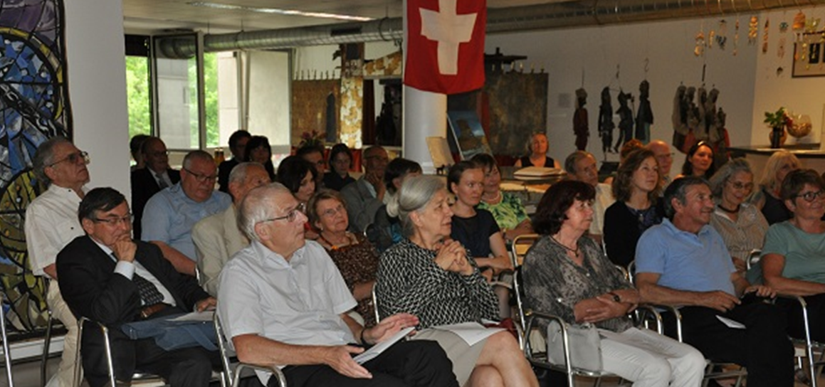 Uroczystość otwarcia wystawy miała miejsce l-go czerwca w obecności wielu przedstawicieli środowisk kultury, miejscowych i pozamiejscowych. Obecnych powitał w ser­decznych słowach prezes Stowarzyszenia Przyjaciół Fundacji Archivum Helveto-Polo­nicum, p. Francis Corpataux. Poczem odczytane zostało (po polsku i w tłumaczeniu na język francuski) pisemne oświadczenie p. Lachowicza, w którym wyraził on podziękowanie za zorganizowanie wystawy ekslibrysów, życzył dobrego jej przyjęcia przez zwiedzających, oraz przesłał serdeczne pozdrowienia z odległego Wroclawia.