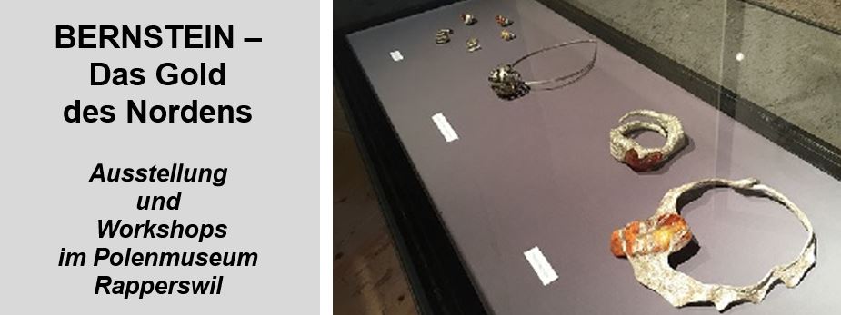 Von der Antike über das Mittelalter bis zur Neuzeit war Bernstein ein wertvoller Gegenstand, der auch im Tauschhandel eine wesentliche Rolle spielte. In einer Ausstellung, die am 6. Mai 2017 mit einer Vernissage eröffnet wurde und bis zum 31. Oktober 2017 dauert, zeichnet das Polenmuseum in Rapperswil die Geschichte des Bernstein detailliert nach. Wertvolle Fundstücke aus Schweizer Privatsammlungen werden präsentiert. An Workshops können Jugendliche wie auch Erwachsene verschiedene Kurse besuchen, in denen praktisch mit Bernstein gearbeitet wird.